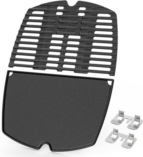 Ongebruikt, volledig, ok, Onlyfire Gietijzeren Grillplaat en Grillrooster voor Weber Q100 Q1000 Q120 Q1200 Q140 Q1400 Gasbarbecues, Vervangende Kookroosters voor Weber 7644/6558, Grillplaat 32 x 21,3CM, Set van 2, B0DBL2XJJV