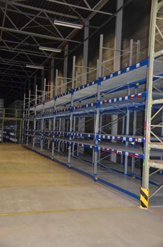 Hoogte=4500mm 8 staanders. 77 liggers lengte=2700mm. Diepte=1100mm. Voorzien van roosters.