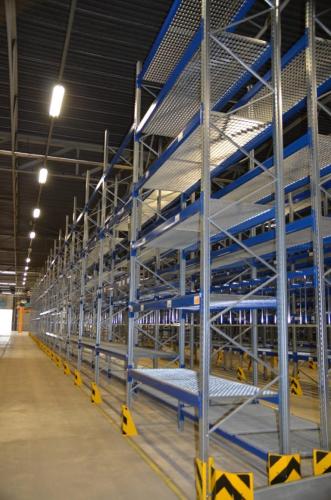 Hoogte=6000mm 9 staanders. 83 liggers lengte=2700mm. Voorzien van roosters en aanrijbeveiliging.