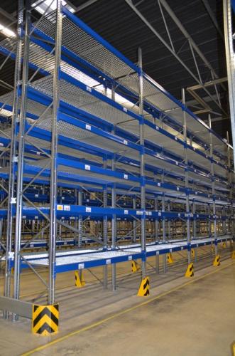 Hoogte=6000mm 9 staanders. 96 liggers lengte=2700mm. Voorzien van roosters en aanrijbeveiliging.