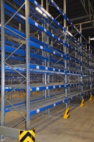 Hoogte= 5000mm 9 staanders. 112 liggers lengte=2700mm. + valbeveiliging. Voorzien van roosters en aanrijbeveiliging.
