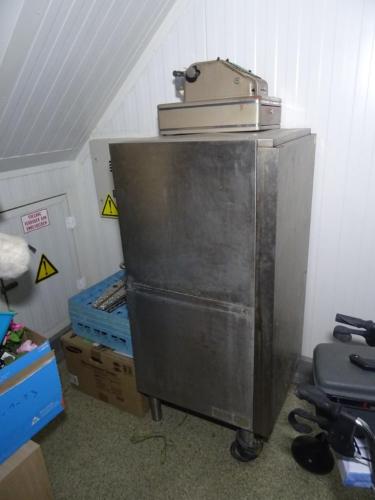 Spoelmachine (na te zien), diverse meubelen, bistrotafeltjes, lege mappen, ...