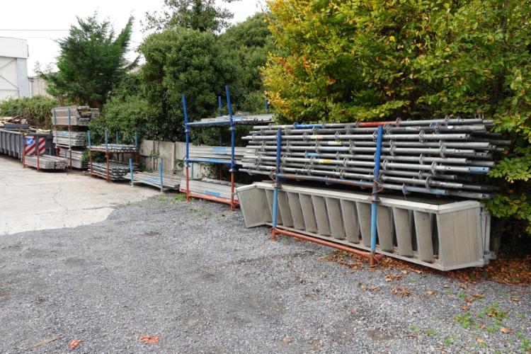 bestaande uit 31 bakken/houders stellingonderdelen waaronder diagonalen, korte & lange verbindingsstukken, staanders, loopbruggen met en zonder trap, voeten,...