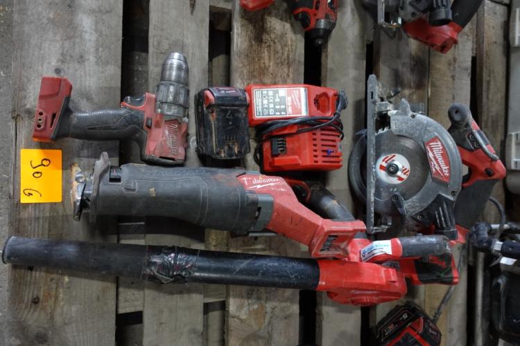 vv accu cirkelzaag, accu blazer, accu reciperozaag, accu schroefboormachine, 2x accu & lader