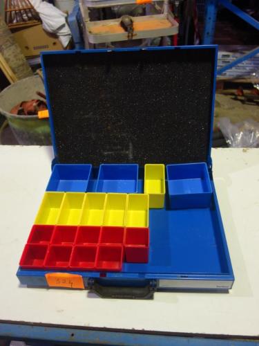 Metalen kist met platieken verdeeldoosjes