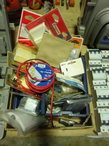 Bak met divers materiaal voor elektriciteit