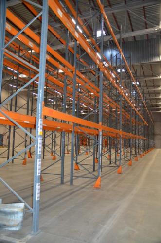 18 staanders H=8000mm (professioneel gekoppeld op 4800mm) 70 liggers L=3600mm. Incl aanrijbeveiliging.