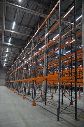18 staanders H=8000mm (professioneel gekoppeld op 4800mm) 94 liggers L=3600mm. Incl aanrijbeveiliging.