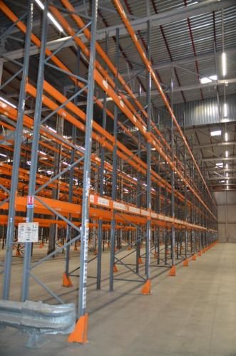 18 staanders H=8000mm (professioneel gekoppeld op 4800mm) 94 liggers L=3600mm. Incl aanrijbeveiliging.