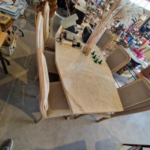 Marmeren tafel en zes stoelen
