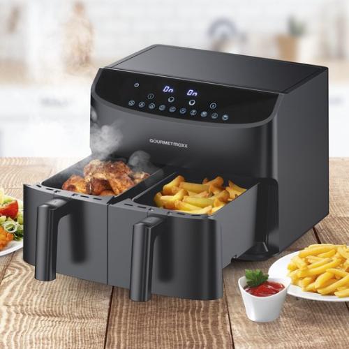 AIRFRYER - GOURMETmaxx - dubbele mand - 2x 3,5 l - zwart
