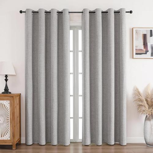 Ongeopend, CUCRAF Gordijnen, 100% ondoorzichtig, linnen, met ringen, verduisteringsgordijnen, grijs-wit, 214 x 132 cm (h x b), set van 2, thermogordijn, koudebescherming, geluidsisolatie, gordijn voor woonkamer, B0D37NMX4R