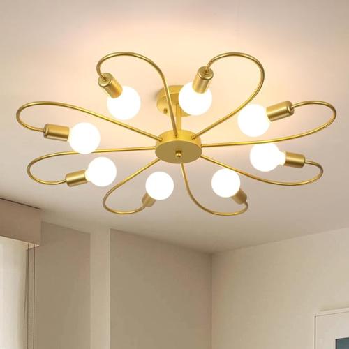 Ongebruikt, getest en werkend, volledig, ok, Qcyuui moderne 8-lichts plafondlamp industriële sputnik plafondlamp, E27 semi inbouw gouden kroonluchters verlichting voor woonkamer boerderij keuken, B091CSDHMM