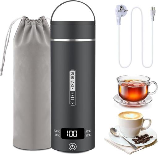Ongebruikt, getest en werkend, volledig, ok, Elektrische reiswaterkoker, klein, 500 ml, kleine waterkoker, voor reizen, snel kookwater, mini-waterkoker, draagbaar, 316 roestvrij staal, automatisch sluiten, voor thee, koffie, babymelk, B0F637TP8B