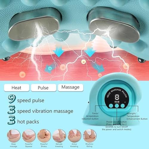 Ongeopend, EMS Nekmassageapparaat, elektrisch massageapparaat voor nek met warmte en trillingen, ontspanningskussen, draadloos nekmassageapparaat met 3 modi, 6 instelbare frequenties, B0FPQ3TCFS