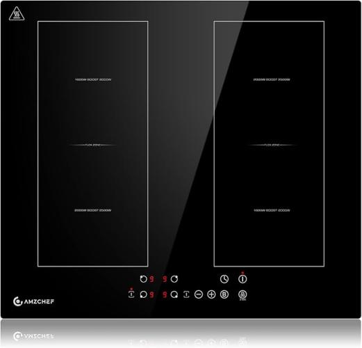 Ongebruikt, getest en werkend, volledig, ok, AMZCHEF Inductiekookplaat (60 cm) met twee flexzones, 4 zones, inductiekookplaat met boost-functie en 9 standen, touch-bediening, timer, veiligheidsslot, oververhittingsbeveiliging, BBQ, 7200 W, B0F8ZKVFMN