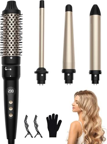 Ongeopend, ok, OKWRAP 4-in-1 thermische borstelset, thermische borstel met verschillende opzetstukken, multifunctionele stylingkit met 100-230 ℃ (Black Gold), B0DMF7BVMH