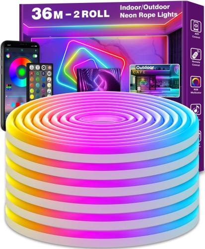 Ongeopend, LETIANPAI Led-neonlichtsnoer, 36 m ( 2x 18M), bediening met app/afstandsbediening, flexibele led-lichtketting, meerdere modi, IP65, RGB neonlichten voor buiten, waterdicht [Energieklasse A] B0D3LCCJ8M