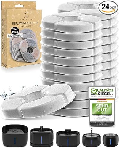 Ongebruikt, volledig, ok, Pretty Paw® Filter voor kattenfontein, origineel vervangingsfilter voor alle Pretty Paw drinkfonteinen, verpakking van 24 stuks = jaarvoorraad, B0DNXMV5NW