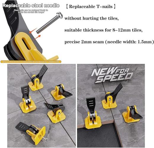 Ongeopend, in seal, Tegelnivelleringssysteem, wig,tegelleghulpset, tegelwiggen, tegelnivelleringssysteem, tegelgereedschap, nivelleringsset tegels, 50 nivelleringsregelaars + 50 reserve stalen naalden (1,5 mm), B0B7XX3G37