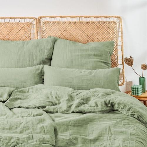 Ongebruikt, ok, Blumtal neteldoek 135x200 cm in een set van 2 - OEKO-TEX gecertificeerd bedlinnen 135x200 katoen - 2x dekbedovertrek 135 x 200 + 2x kussensloop 40x80 - bedlinnen 135x200 40x80 Groen,B0D6Z2C7Y9