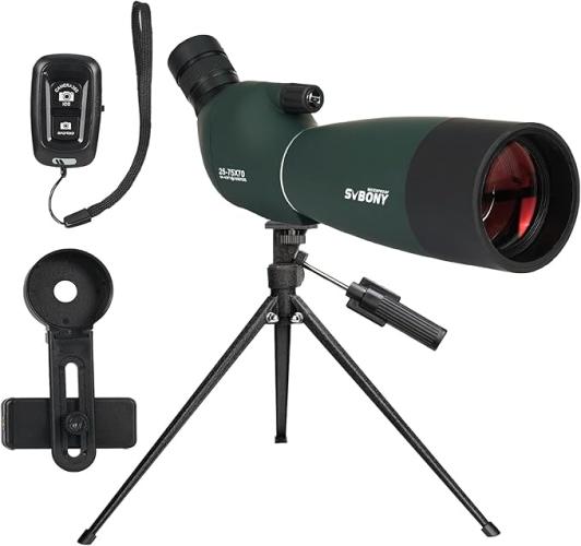 Ongebruikt, getest en werkend, volledig, ok, Svbony SV28PLUS Spotting Scope voor Vogelspotten, 25-75x70mm met Draadloze Controller, BAK4 A5 Wijnrode FMC Richtkijkers, Digiscoping Adapter voor Wildlife Boogschieten Astronomie, B0C7BY7CR7