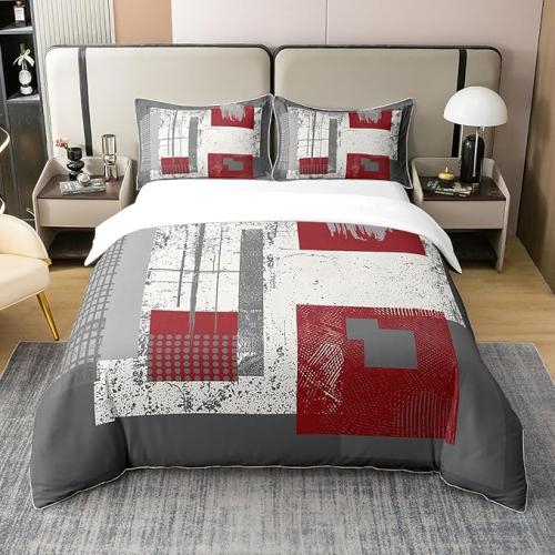 Ongeopend, Homewish Katoen dekbedset 240 x 260 cm Vierkant-rood, Abstract Pattern Bedding Set , 2x kussensloop 65x65, B0D31L2XZY