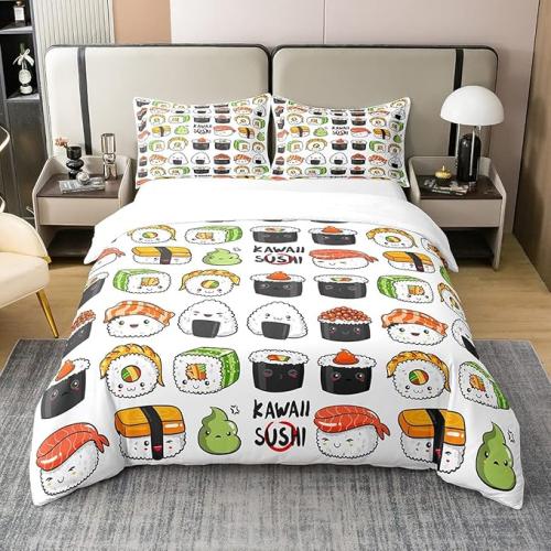 Ongeopend, Homewish Sushi Dekbedset 200 x 200 cm, 100% Cotton, Kawaii Marine Animal Bedding Set, Sushi Pattern Bedding Set, Japanese Style Duvet Cover B0CMTS44CY 2x kussensloop 65x65cm