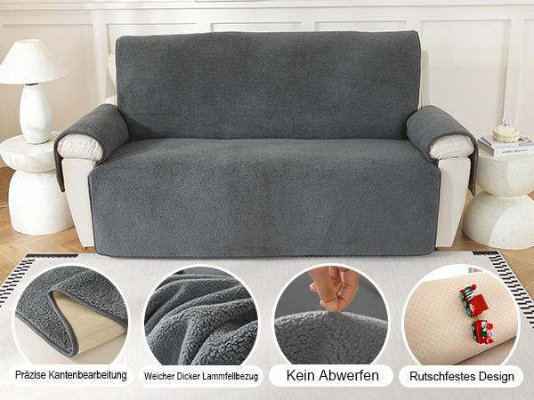 Ongeopend, ok, Royhom dikke lamsvacht bankhoes 2-zits, bankbeschermer antislip voor leren bank, wasbaar, superzachte bankhoes, lichtgrijze bankhoes voor kinderen en huisdieren (donkergrijs, 2-zits), B0DHD33BGC