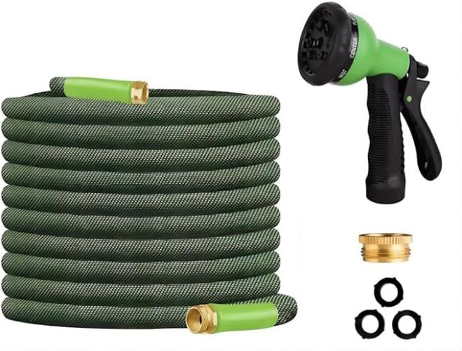 Ongeopend, Flexibele uit-rekbare tuinslang 15 m met spuitmond, groen, B0D4ZHGYPL