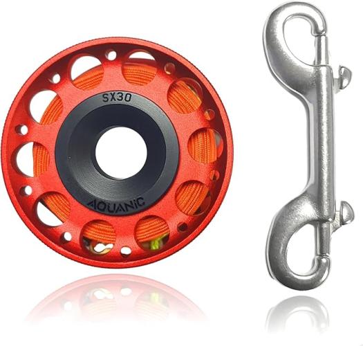 Ongebruikt, ok, Duiken Reel 101FT Vinger Reel met Duik Dubbelzijdige Bout Snap Clip Aluminium Duik Vinger Spoel Reel voor Snorkelen Duiken Vissen, Rood, B0CM6KL7DT