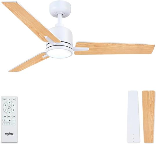 Ongebruikt, getest en werkend, Newday Plafondventilator met Lichten en Afstandsbediening, 122cm Witte Houten Plafondventilator met Lampen Dimbaar, Rustige Omkeerbare DC Plafondventilator met 6 Snelheden, B0DPW3PL42