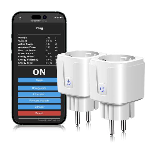Ongeopend, ok, TASMOTA ESP8266 Stopcontact 16A, CURRYSMARTER stroommeter voor mini-stopcontact, WLAN ESP8266 stekker, stroommeter, timer, werkt met MQTT, Domoticz, ioBroker Home-Assistant, Google Alexa, 2,4 GHz (2 stuks), B0BKQP5KH2