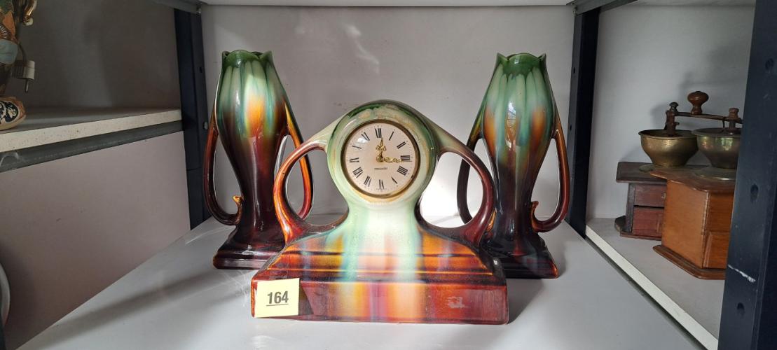 Art nouveau klokstel tulin met mercedes uurwerk