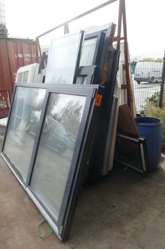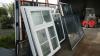 Partij nieuwe en gebruikte PVC ramen diverse modellen -ongeveer 10 stuks + metalen ramenbok