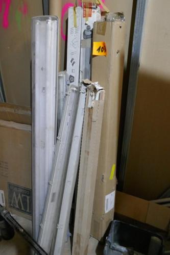 Diverse verlichtingsarmaturen - 4 plastieken boxen met zwarte spotverlichting