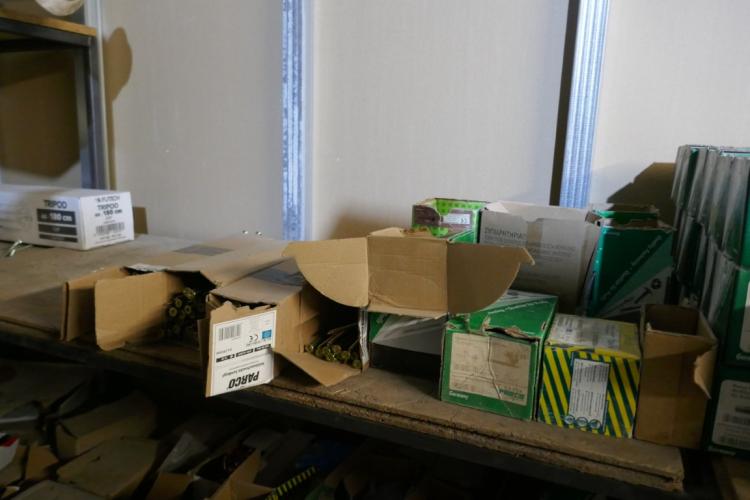 Inhoud rek bevestingsmateriaal : schroeven - pluggen - moeren - enz … ( groot lot )