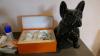 Luidspreker - decoratieve Franse buldog - doos met koffiekopjes set