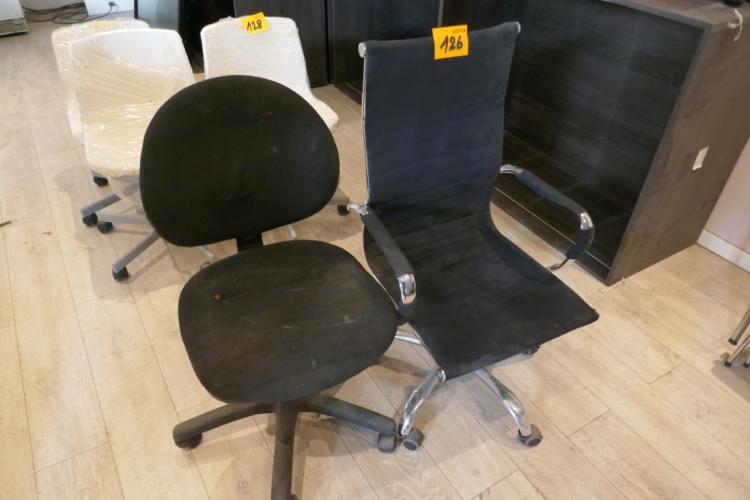 2 diverse verrijdbare bureaustoelen + 4 design witte stoelen met zitting in kunststof