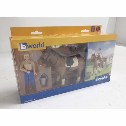 Paard-en ruiter boerderij set met omheining Bruder 62500