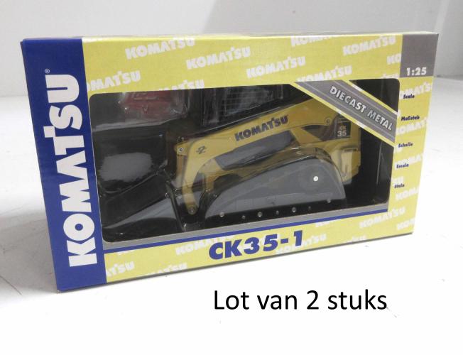 Lot van 2x Miniatuur Komatsu CK35-1 Skid Steer Loader met rupsen