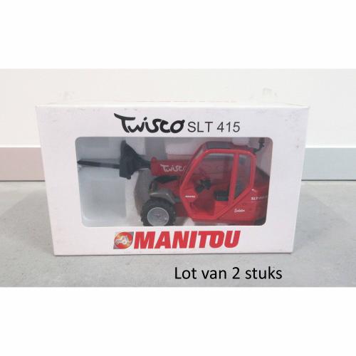 Lot van 2x Miniatuur Manitou Twisco SLT 415 met vorken