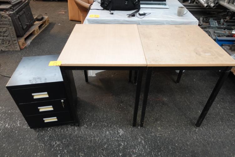 2x tafel + metalen archiefkastje