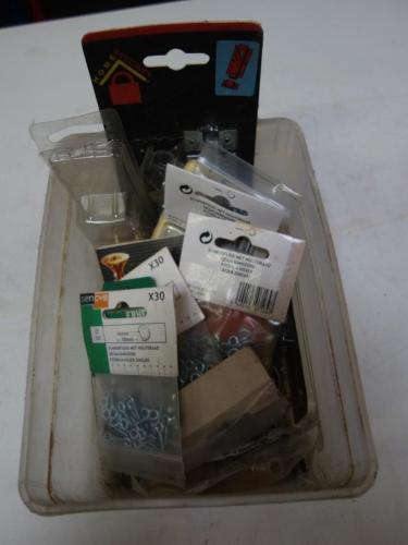 Doos met diverse haakjes, vijzen, e.d.