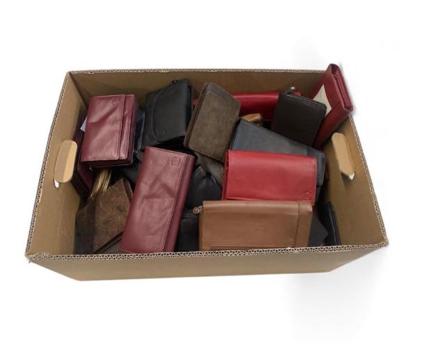 Lederen portefeuilles en portemonnees met defecten zoals defecte rits, defecte drukknop, verkleuring, stikking defect, … - Verschillende kleuren - verschillende modellen - PLM 150 stuks