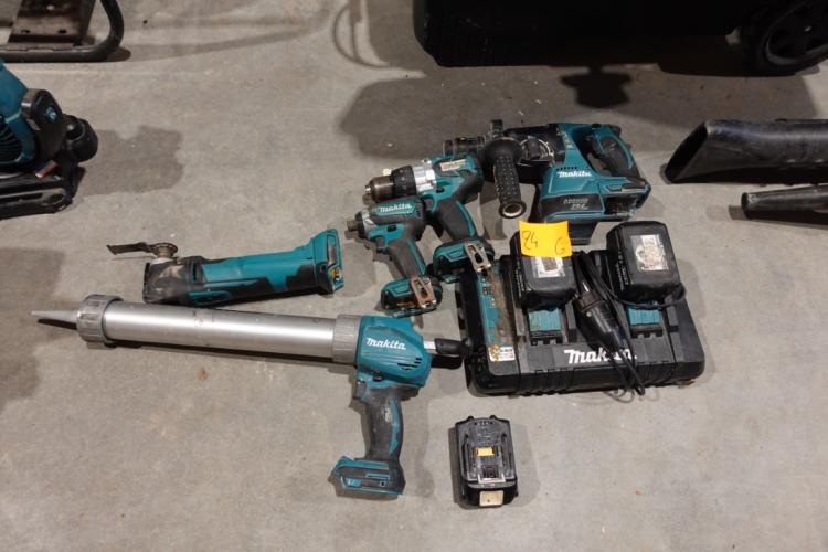oa: slagschroefmachine, multitool, schroefboormachine, klopboorhamer, kitspuit, samen met multilader en 3x accu