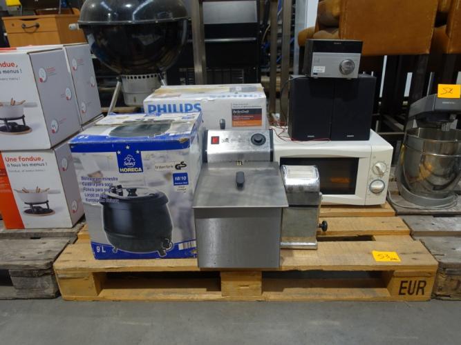 oa: Microgolfoven , soepverwamer , Friteuse , biertapinstalatie , muziek instalatie , rasp
