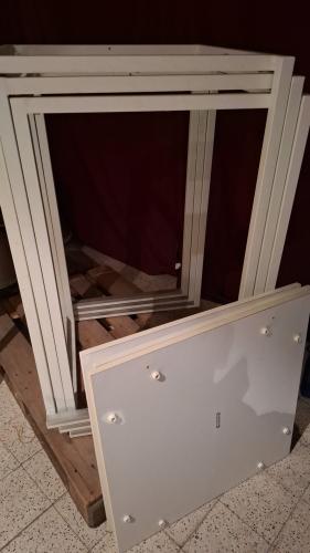 4 witte design sta tafels, 70cm x 70cm, 110cmH