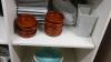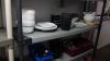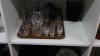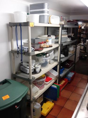 2x rek + inhoud oa: borden , serveerborden , snijplanken ,... vuilbakken , inhoud kast met borden , glazen , enz ..