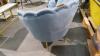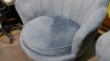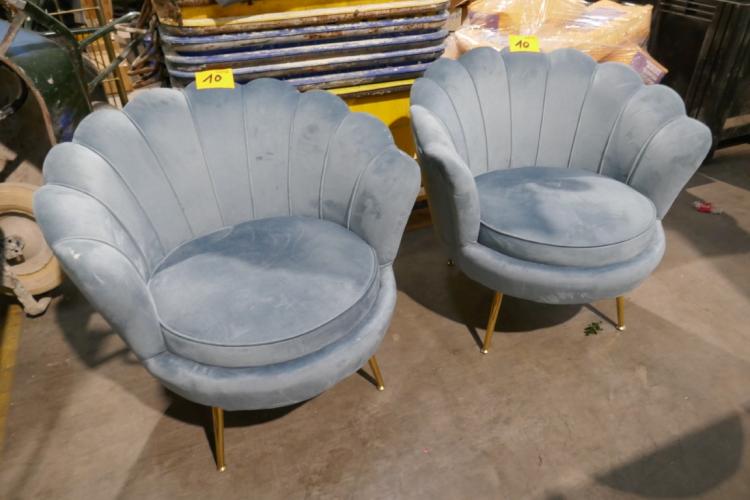 2 schelpvormige fauteuils blauw stoffen bekleding